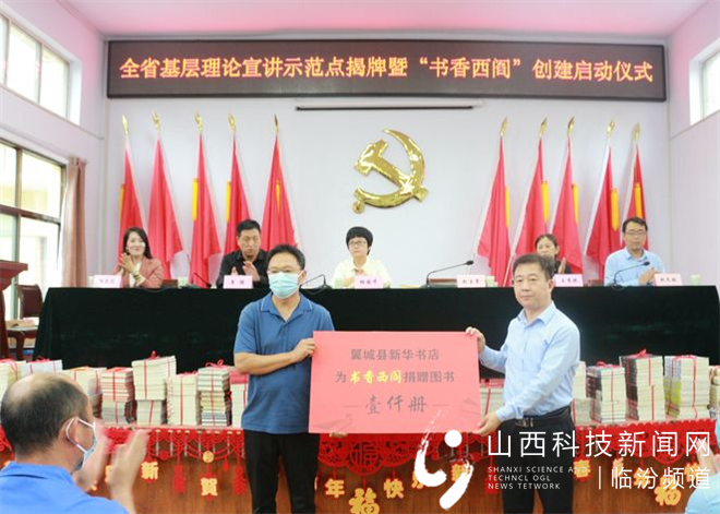 山西科技新闻网临汾讯(张希有 姜克杰)8月30日,翼城县西阎镇举行全省基层理论宣讲示范点揭牌暨“书香西阎”创建启动仪式。翼城县县委常委、宣传部长胡国华,宣传部副部长李强、文旅局副局长王秀艳、文旅局文化服务中心主任邹亚莉出席仪式,西阎镇机关全体人员、各村支部书记、站所及企业负责人共计30余人参加。