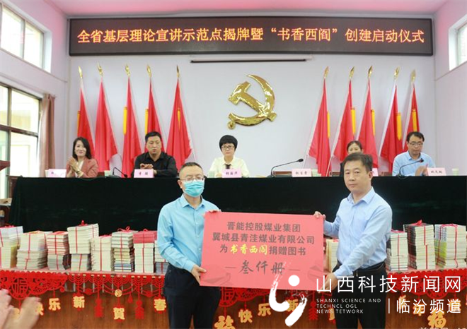 活动现场举行了图书捐赠仪式,翼城县新华书店、晋能控股煤业集团翼城县青洼煤业有限公司、晋能控股煤业集团翼城县上河煤业有限公司分别向“书香西阎”捐赠图书。