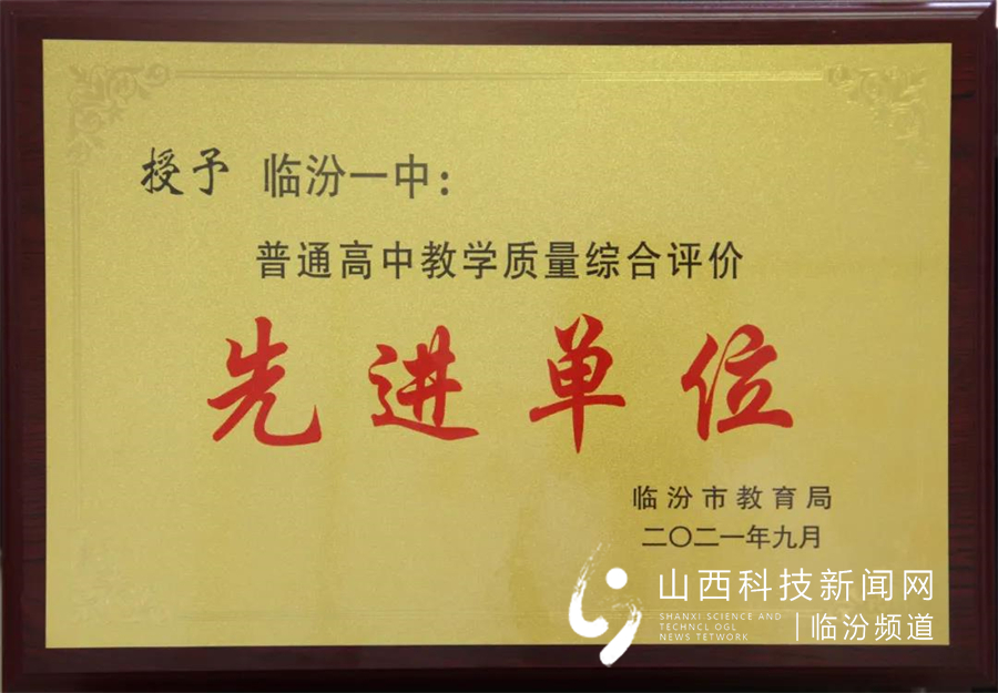 临汾一中荣获“普通高中教学质量综合评价先进单位”