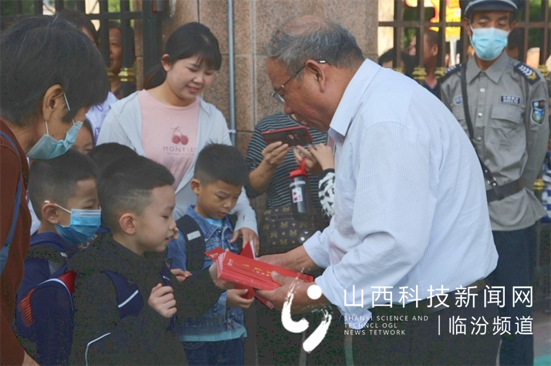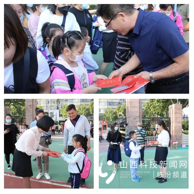山西科技新闻网临汾讯(王继发 韩婷婷 王卉娟)2021年9月8日上午08:30,一年级新同学走进了美丽的校园——临汾市第一中心学校莲花池校区。该校校长高洪山带领学校领导组在学校门口迎接新同学的到来。