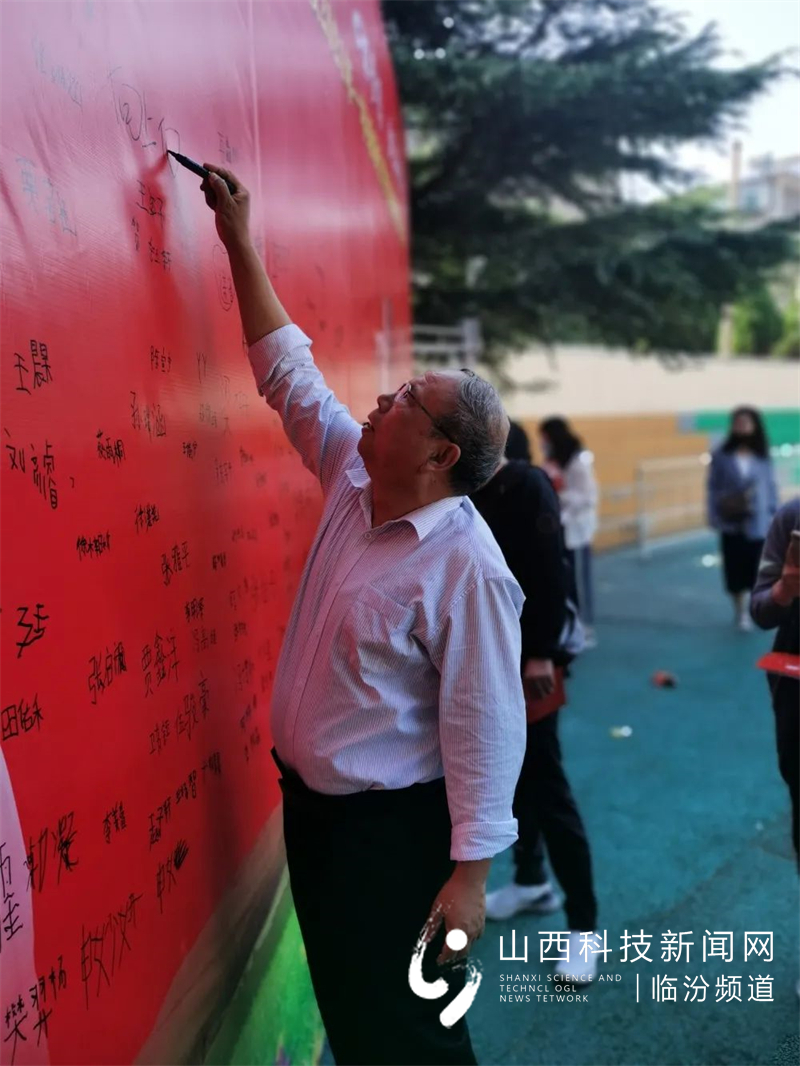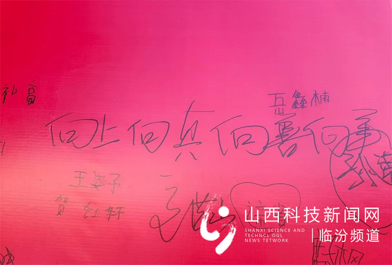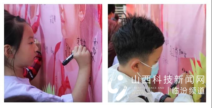 同学们在签名墙上认真地签下自己的名字,记录学习生涯的第一个印记。