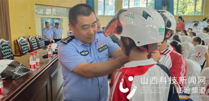 临汾市公安局党委委员、交警支队支队长曹国刚走上讲台,为师生上了一堂交通安全课,教育学生如何正确走路、骑车、乘车,同时要求同学们不嬉戏过马路,做好家庭的“交通安全监督员”,提醒爸爸妈妈驾驶电动车一定要戴好安全头盔。曹国刚同志倡议各位老师在放学前最后一节课结束时提醒学生放学路上注意交通安全,文明出行。