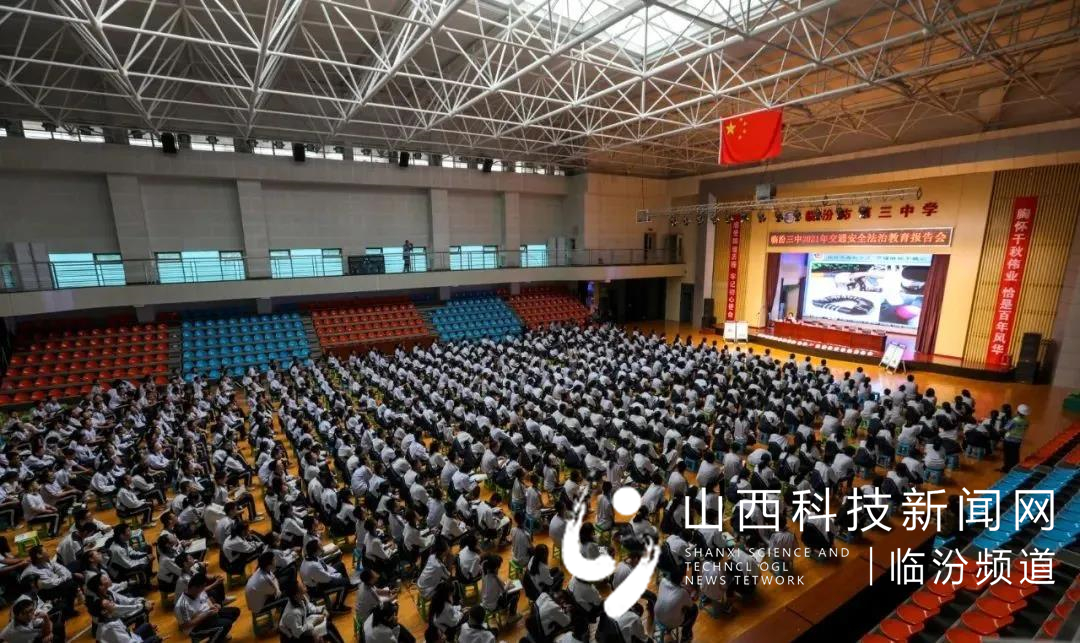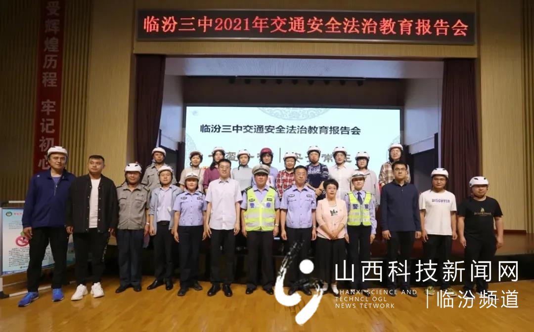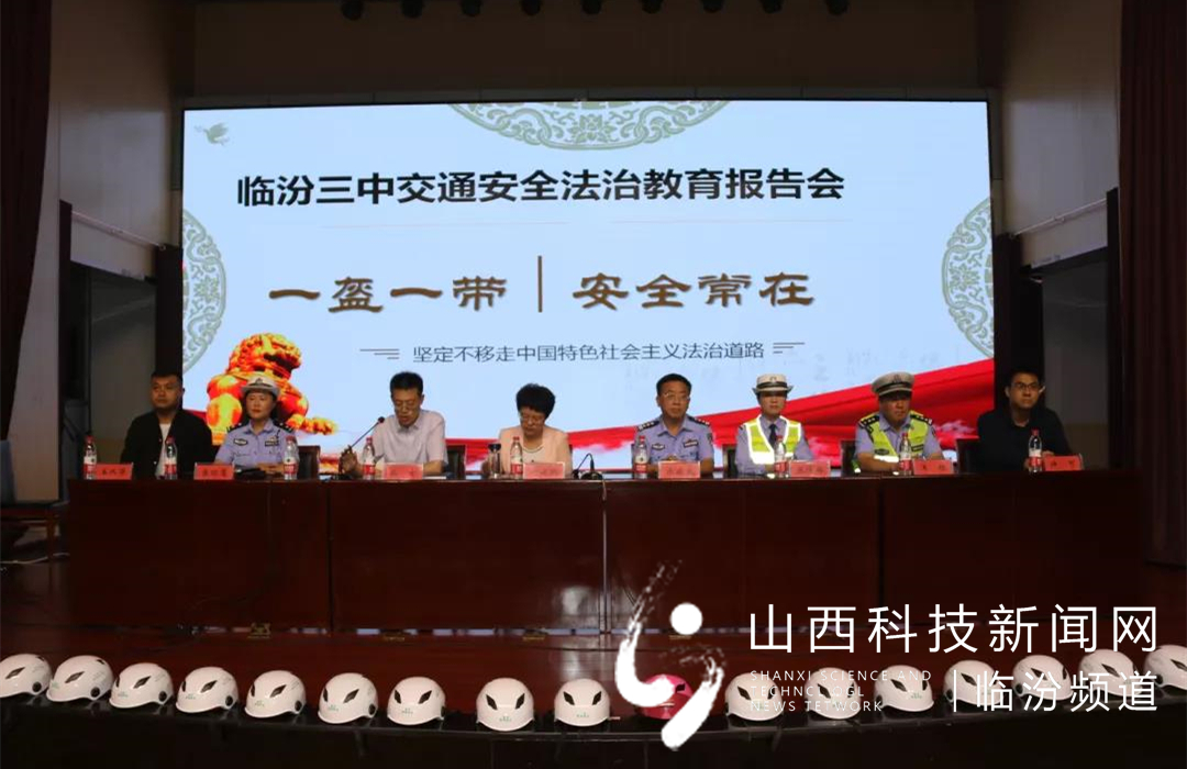 山西科技新闻网临汾讯(王继发 张金华)为预防涉校道路交通事故发生,增强学生交通安全意识,培养学生文明出行习惯,9月17日下午17时,临汾市公安局交警支队直属北城大队民警走进临汾三中开展“一盔一带 安全常在”交通安全教育法治宣传活动,在校700余名师生现场听宣传报告会。