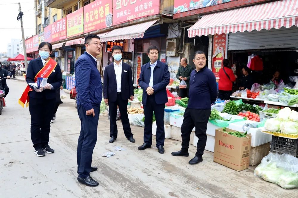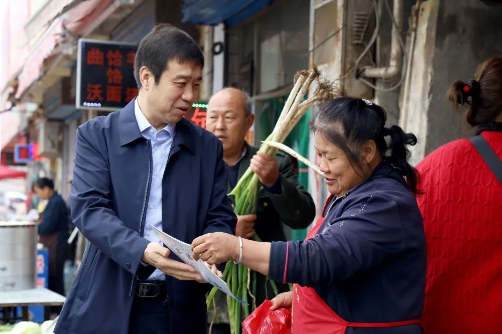 随后,刘亮主席一行赶赴营销活动一线,亲自参与指导支行“迎国庆热流 抢市场热潮”主题营销活动,在人流、物流量较高的农贸市场向小商户及过往群众讲解农商行金融产品及特色服务,鼓励引导干部职工,把握契机、因地制宜、因户施策地开展好系列营销活动。
