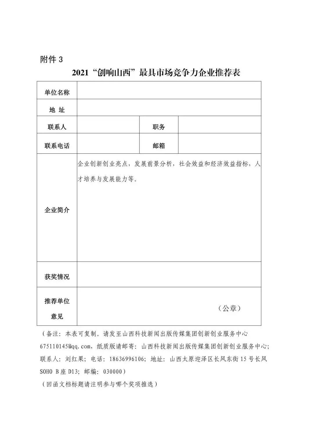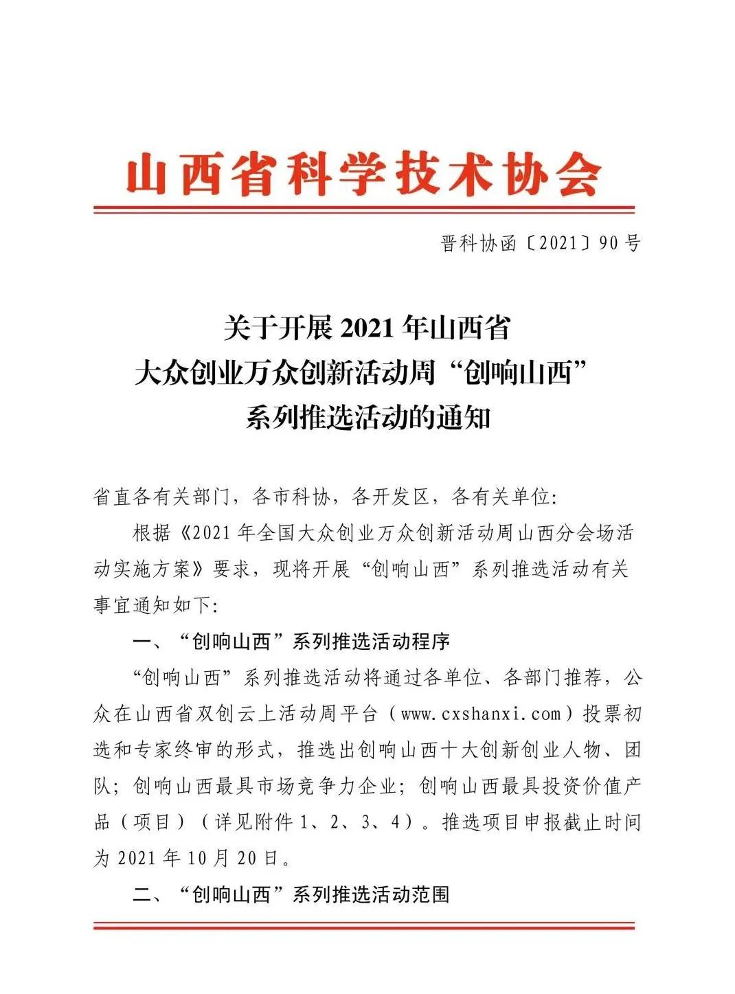 关于开展2021年山西省大众创业万众创新活动周“创响山西”系列推选活动的通知