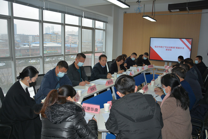 临汾市科技局科技规划与政策法规科科长户其勇首先对重新修订后的《临汾市“市长创新奖”奖励办法》进行了全面解读,随后各参会企事业单位围绕“市长创新奖”修订后的授予条件、奖项设立、评选年限、奖金情况和奖励经费的来源以及使用规定、推荐和评审程序等重点内容进行积极讨论发言。市政府发展研究中心靳亚伟副主任和山西农业大学小麦研究所的党建友副所长两位专家代表进行了点评。